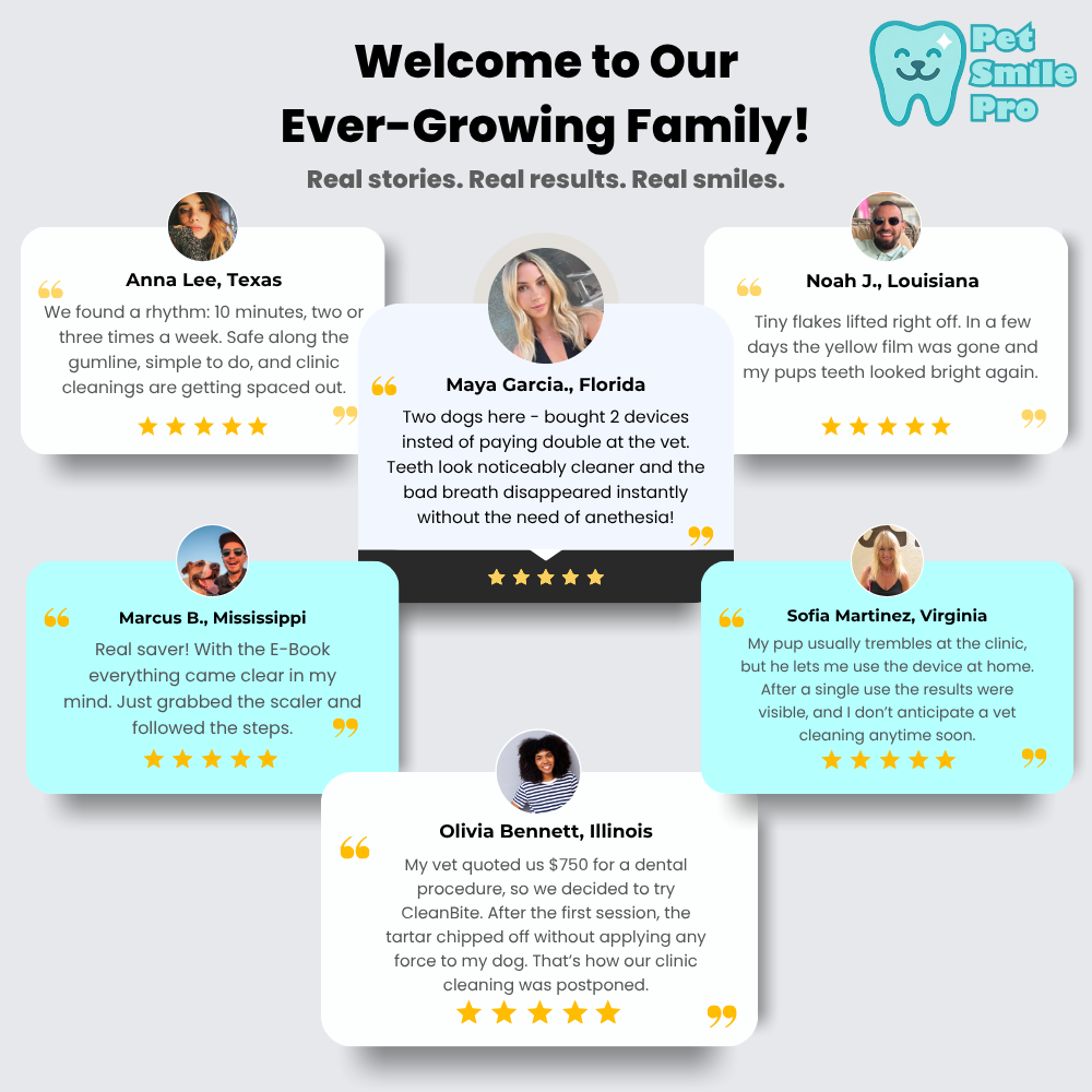 Yes! CleanBite™ is safe and suitable for both dogs and cats. Its technology removes plaque without pain or anesthesia, making it ideal for small, sensitive pets too. Just use the lowest mode and take it slowly for your cat’s comfort.